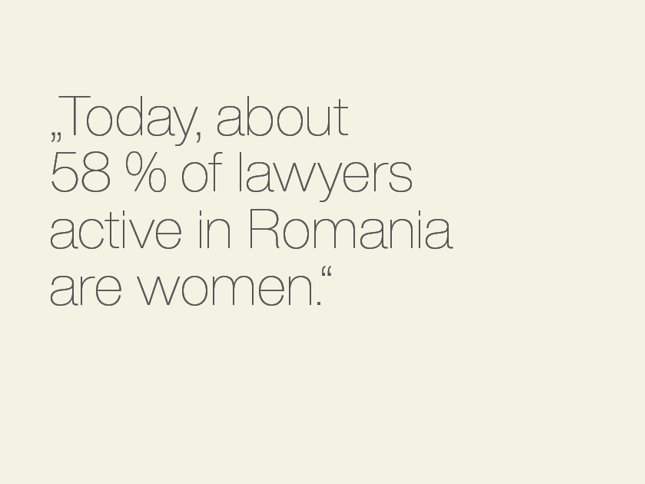 “Today, about 58 % of lawyers active in Romania are women. The days when the first attempts by Romanian women to be admitted to the Bar were met with repeated rejections are long gone, and we can no longer talk about gender imparity among lawyers in our country. But, unfortunately, this cannot be said for all sectors and all hierarchical levels, so fostering dialogue, supporting successful role models, as well as encouraging educational and mentoring activities aimed at promoting diversity are still needed.”